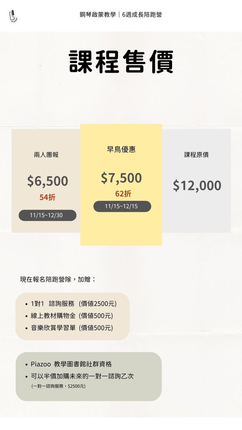若您想和朋友一起選擇這個方案,再麻煩報名後,私訊Piazoo小羊老師,
